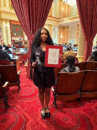 2024 scholarship awardee Selah Johnson shown being recognized on the Senate floor this year.